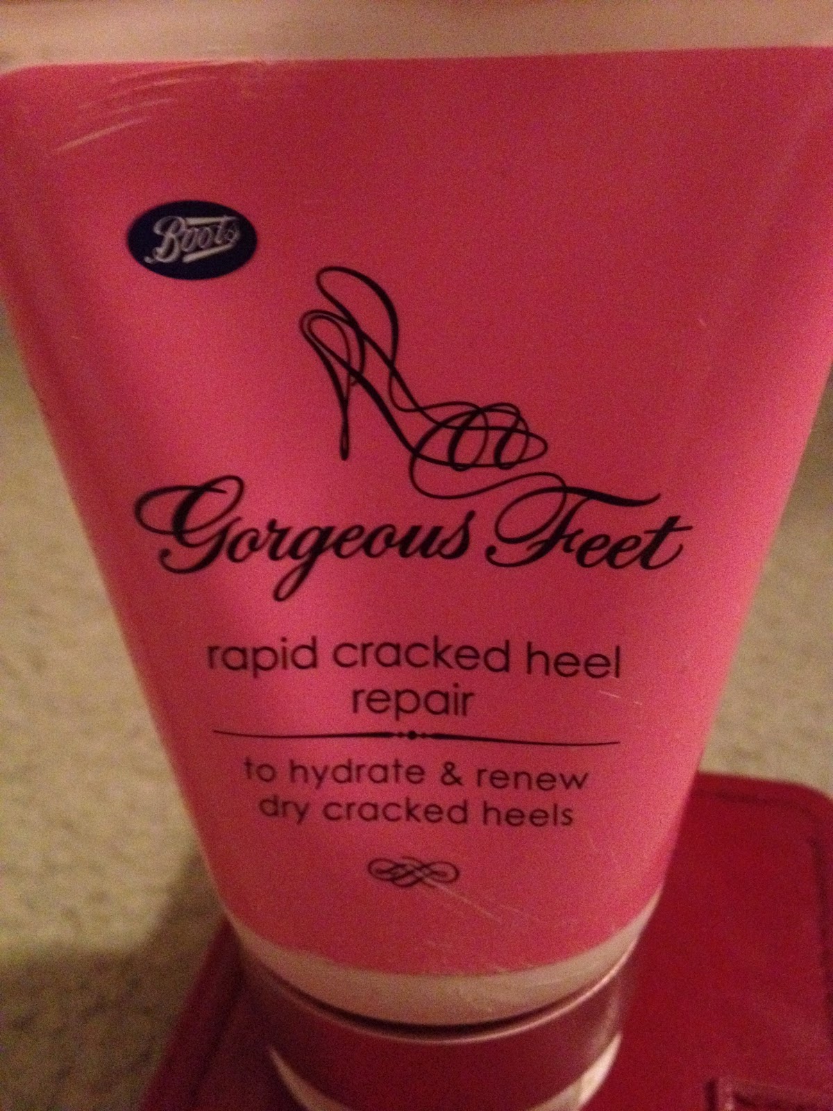 After having my boots delivery today, I realised that I forgot to order my miracle foot cream which i'm running out of! The product is Gorgeous Feet - rapid cracked heel repair cream. It's fantastic, I usually use it quite liberally all over my feet after having a bath or shower just before bedtime. I put it on just before I go to bed and then put socks over my feet so that it allows it to soak in overnight!